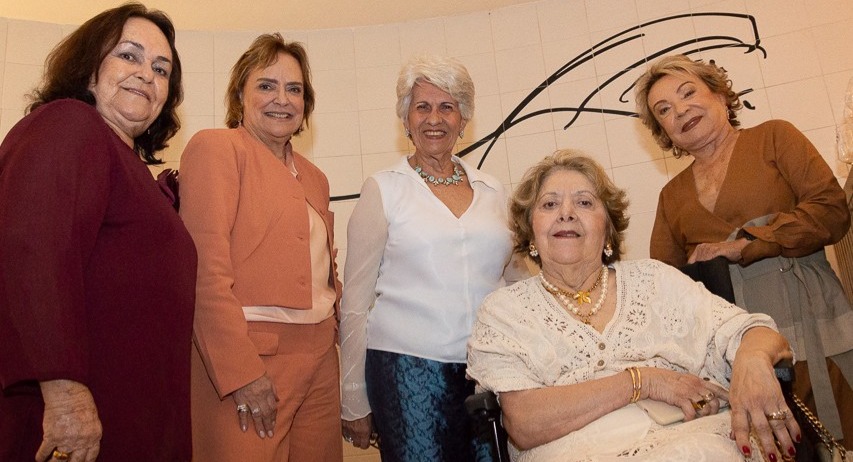 Marta Dantas, Rita Rivello, Piedade Quintanilha, Maria Alice Gaspar e Myrthes Felisberto são aplaudidas no Clube do Vinho
