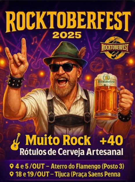 O Rocktoberfest Rio de Janeiro está de volta! Criado em 2019, o festival retorna em 2025 com duas edições que celebram a boa música, a cultura cervejeira e a diversão em família. A primeira acontece neste sábado e domingo, dias 4 e 5 de outubro, no Aterro do Flamengo (Posto 3), às 11h. Depois, o evento segue para a Praça Saens Peña, na Tijuca, nos dias 18 e 19 de outubro. Com entrada gratuita mediante a doação de 2 kg de alimento não perecível para o Passaporte Solidário, a programação reúne mais de 40 rótulos de cervejas artesanais, 20 vinhos de vinícolas renomadas, opções gastronômicas variadas, shows de rock ao vivo e espaço pet friendly. Inspirado na tradicional Oktoberfest, o Rocktoberfest aposta em uma versão carioca que une cerveja e rock, conquistando cada vez mais público. Além da experiência gastronômica e cervejeira, o festival apresenta uma programação musical diversificada, que vai de clássicos internacionais a ícones nacionais. O público poderá conferir tributos a bandas e artistas como The Who, Nirvana, Pearl Jam, David Bowie e Guns N’ Roses, além de homenagens a nomes consagrados do rock brasileiro, entre eles Barão Vermelho, Legião Urbana, Paralamas do Sucesso, Rita Lee e Capital Inicial. Também haverá espaço para bandas autorais, reforçando o espírito de celebração e descoberta musical. A edição ainda conta com o apoio da Farra Bier e do Macieira BBQ, responsável pelo camarim Rockstar. Fernando Fernandes, organizador do evento e também responsável pelo Rock 80 Festival, destaca: “A Oktoberfest já ganhou o coração dos cariocas e agora trazemos essa releitura com o rock, um estilo que também move multidões. É uma alegria poder oferecer ao público um evento democrático, com música de qualidade e experiências que unem cultura, gastronomia e solidariedade.” Programação deste final de semana no Aterro do Flamengo: 04/10 – sábado