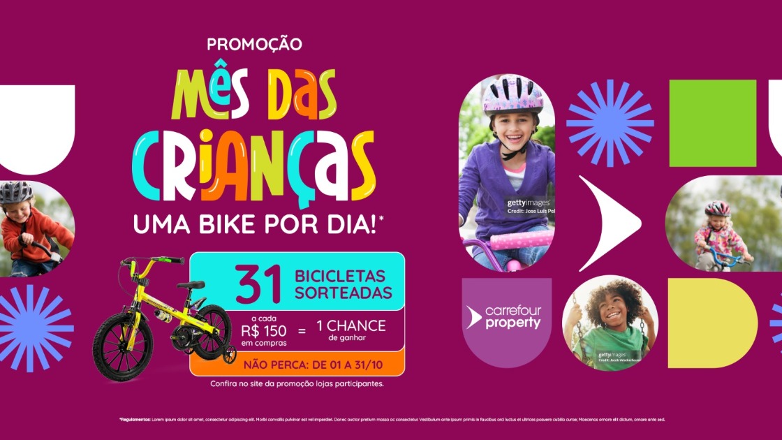 “O Dia das Crianças é uma das datas mais simbólicas do nosso calendário. A bicicleta, que faz parte da memória afetiva de tantas pessoas, é o presente ideal para traduzir esse espírito. Estender a celebração durante todo o mês de outubro e sortear 31 bicicletas em diferentes regiões do país é a forma que encontramos de transformar essa emoção em realidade”, afirma Roger Teixeira, gerente de marketing do Carrefour Property.