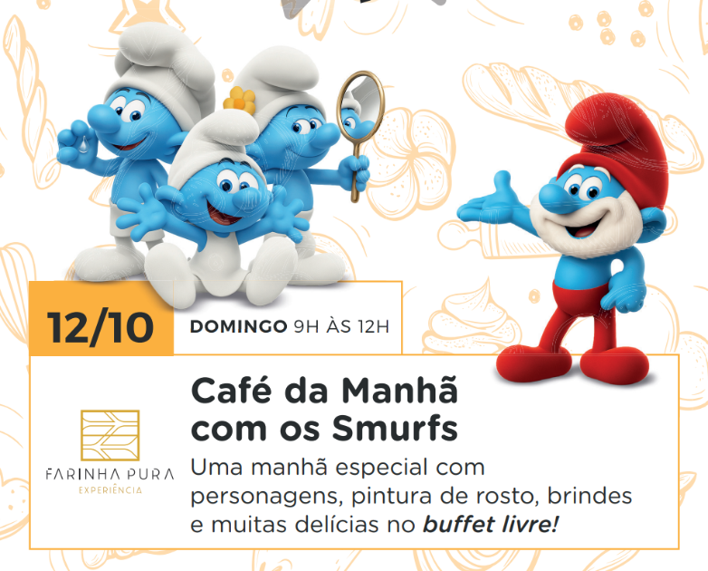 Mês das Crianças no Empório Farinha Pura conta com café da manhã com os Smurfs e oficinas criativas