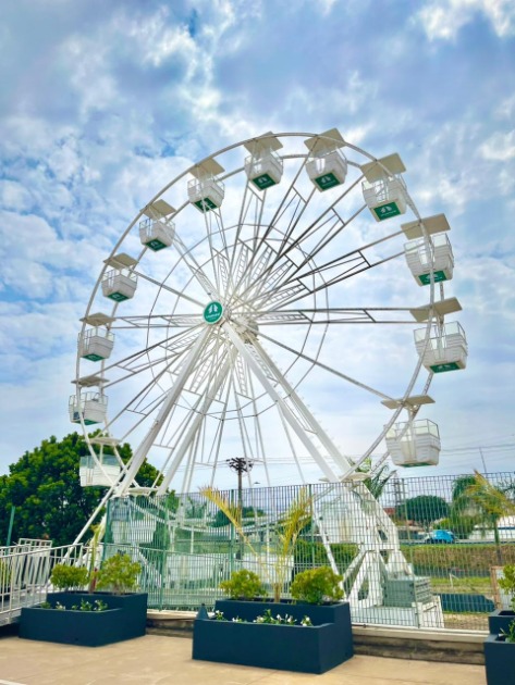 Com 16 gôndolas, sendo 15 para até quatro pessoas cada e uma adaptada para pessoas com deficiência, a Roda-Gigante oferece uma vista privilegiada da cidade e promete momentos de pura emoção. O funcionamento será de segunda a sábado, das 14h às 22h, e aos domingos, das 12h às 20h, no estacionamento térreo. Cada ciclo completo tem duração de quatro a cinco minutos, com quatro voltas contínuas, garantindo uma experiência encantadora do início ao fim.