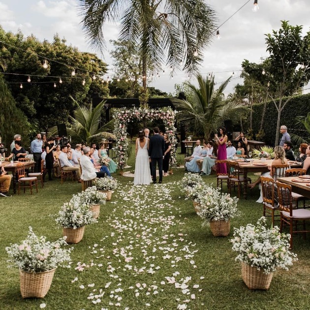 • Decoração e flores: variedade maior de espécies, como peônias, rosas, boca-de-leão, lisiantos e flores do campo, integradas com ambientes naturais em celebrações ao ar livre.