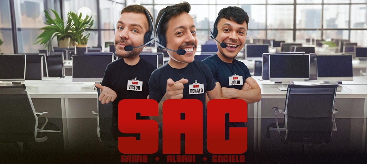 O público carioca vai receber uma das noites mais aguardadas do humor nacional. Dia 09 de novembro, às 21h, Victor Sarro, Renato Albani e Júlio Cocielo sobem juntos ao palco da Farmasi Arena para apresentar o espetáculo “S.A.C.”, que promete uma combinação perfeita entre improviso, histórias do dia a dia e humor afiado.