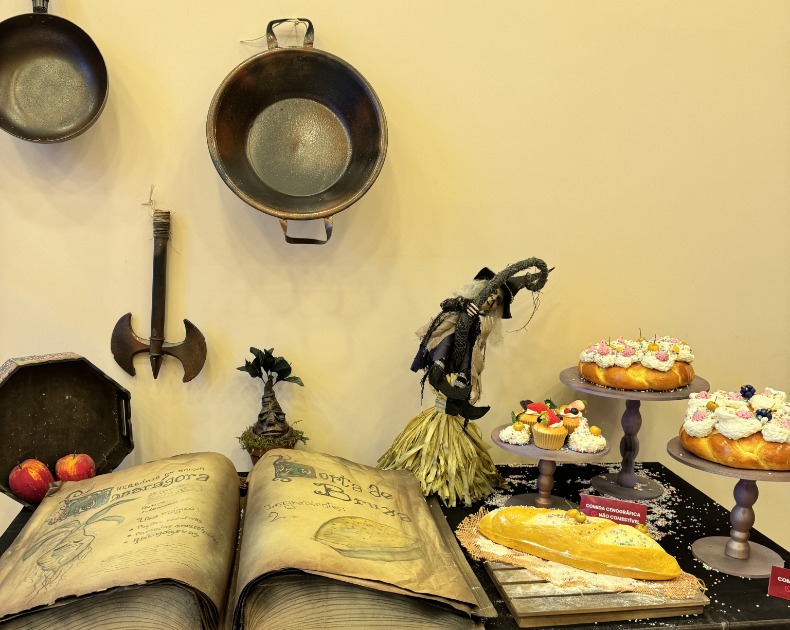 Dentro, serão surpreendidos por um ambiente repleto de elementos lúdicos do universo das bruxas. A experiência interativa e envolvente foi pensada para divertir toda a família.
